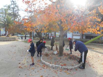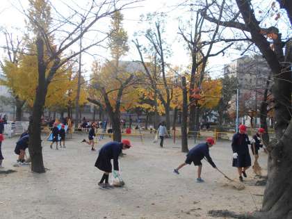 11月28日(水)の2時限目に、全校児童が玉造小学校下にある5つの公園に分かれて清掃活動を行いました。公園の清掃を地域や保護者の方、大阪城公園事務所の方と一緒に行うことで人と人とのふれあいを大切にし、地域の一員として地域社会に奉仕する気持ちを育んでいます。