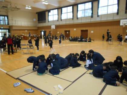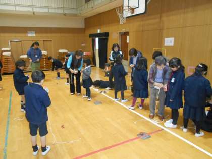1月16日(水)1年は、地域の女性会の方々に来ていただき、おはじきやお手玉、こま、けん玉、あやとり、折り紙を教えていただきました。女性会の方からコツを教えていただき、上手にできるようになりました。