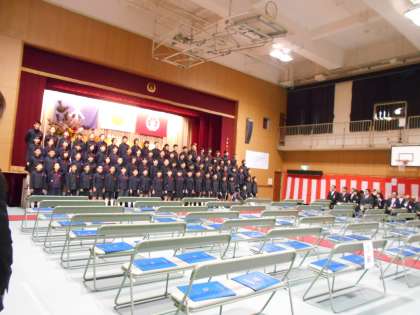 卒業式終了後には、まずPTA代表の方からのPTA記念品贈呈があり、次に保護者の代表の方から心のこもった謝辞をいただきました。