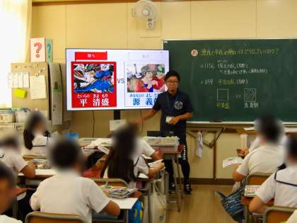 6年生は社会の学習です。平安時代から登場した源氏と平氏は、争いながらどのようにその力を伸ばしていったかを調べていきました。