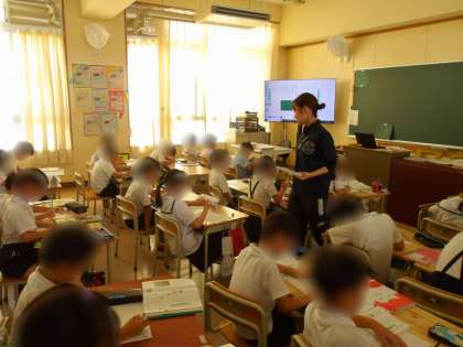 3年生は国語で「グループの合言葉を決めよう」の学習です。運動会に向けて、学級の合言葉を考えるにあたり、まず自分の考えを持つことや話し合いの目的や方法について確かめていきました。