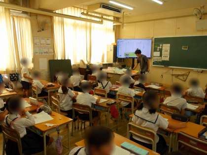 2年生は国語の物語文「ニャーゴ」の学習です。「このお話はいくつの場面に分けることができますか?」という先生の問いかけに、子ども達は交流しながら、場面分けに取り組みました。