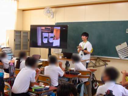 6年生は学級活動の時間です。先生が下見で撮影した写真を見ながら、修学旅行の行程を確かめていきました。