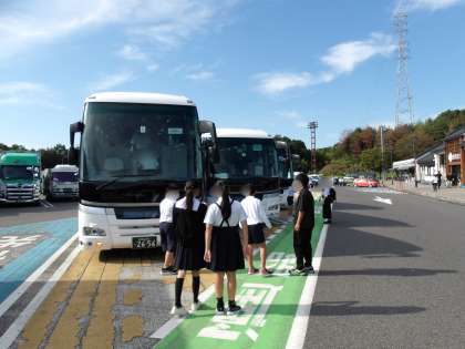 渋滞もなく、子どもたちを乗せたバスは高速道路を順調に進みました。予定通りの時間に最初の目的地に到着しました。