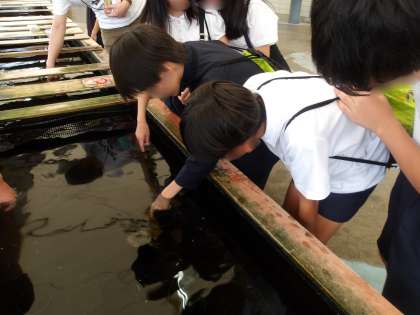 鳥羽水族館では、活動班に分かれて、館内を自由に見学しました。たくさんの海の生き物に子どもたちは圧倒されていました。