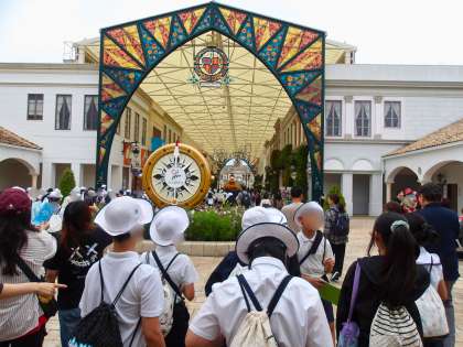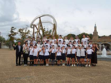 開園時間の少し前に志摩スペイン村に到着しました。クラスごとの記念撮影をして、いよいよ入場です。