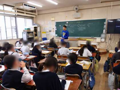 6年生は学級活動でハロウィンパーティーをしています。おたのしみ会の出し物も学習端末を使って、全員が参加できるように工夫されていました。