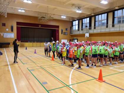 5年生は講堂にて運動会の練習です。あいにくの天気で運動場ではできませんでしたが、入退場の仕方や並び方を再確認しました。