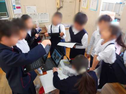 2年生は生活の学習です。先日行ってきた町探検の画像やメモをグループで見ながら、どのような報告をするか話し合いました。