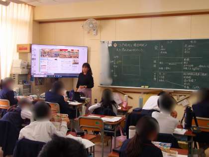 6年生は社会で文明開化について学習しています。江戸時代と明治時代の町の様子を比較しながら、どんなところが変化しているか交流しました。
