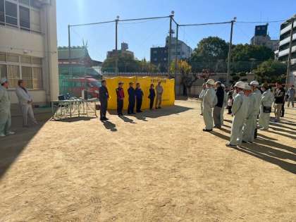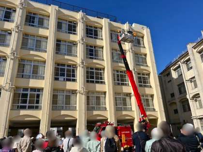 玉造小学校にて地域防災訓練である「たまつくり防災フェスタ」が行われました。中央消防署の協力の下、水消火器の消化体験、ポンプ車の展示、高所作業車の活動実演など様々な体験活動が展開され、本校の児童も多数参加しました。