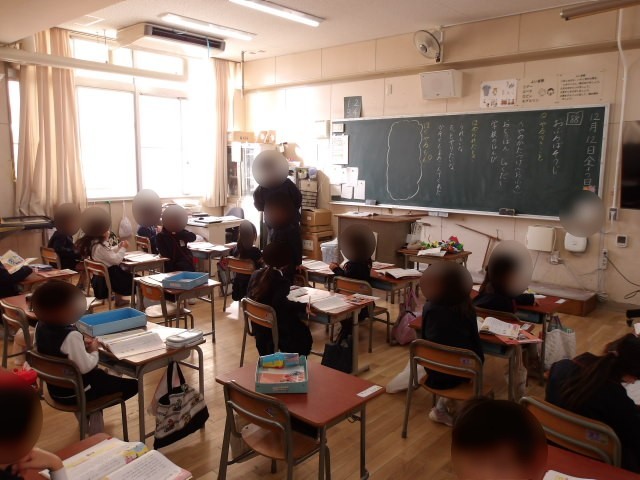 1年生は道徳の時間です。「おふろそうじ」というお話から、自分がやらなければならないことはどんなことがあるかを交流しました。また、それができたときの気持ちについても考えました。