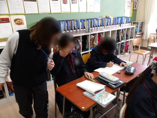3年生は外国語活動の学習です。アルファベットを自由に仲間分けする活動をしました。直線だけの文字、まるく線がまがっている文字等、自分の考えたルールで仲間分けしながら、アルファベットに親しみました。