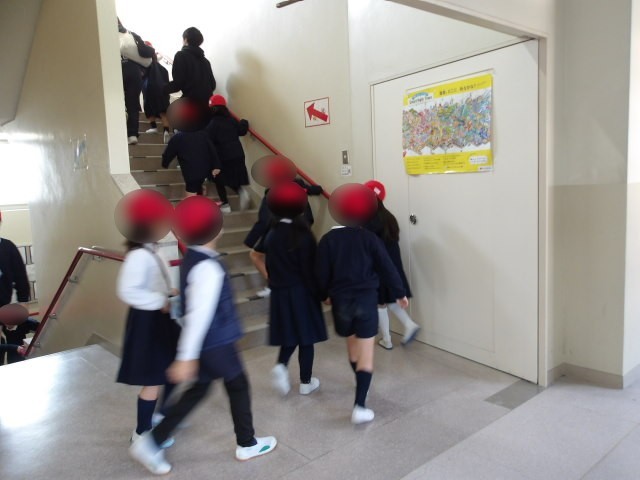 地震避難で一度、運動場へ避難した後、津波警報が発令された際の訓練に移りました。校舎の安全を確認し、津波に備えて再び校舎へ避難しました。災害はいつ起きるかわかりません。日ごろから、災害に備えることが大切です。この機会にご家庭でも、お子様と災害時の対応について話し合っていただけたらと思います。