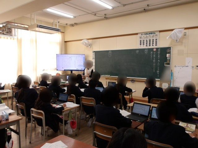 5年生は国語「資料を見て考えたことを話そう」の学習です。考えたことを話すには、話す内容を文章に書いていくと伝えやすいです。今日は、文章構成をはじめ・中・終わりにすることを確かめました。