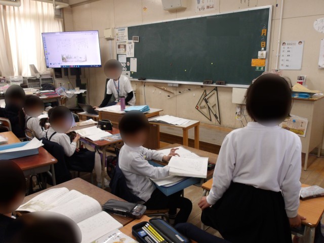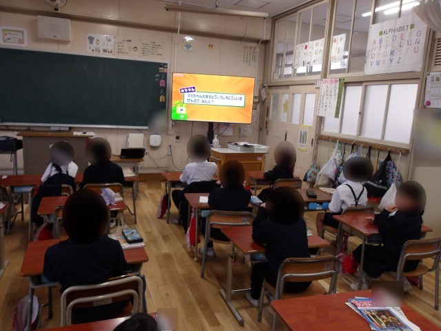 1年生は算数「ずをつかってかんがえよう」の学習です。NHK for Schoolを視聴しながら、そこで起こる問題場面をみんなで考えました。動画を見ることで、子ども達のやる気も高まりました。