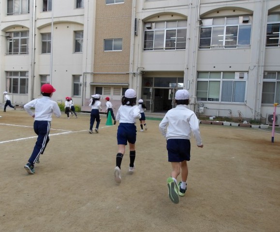 体育科では、持久走に取り組んでいます。5分間、同じペースで走り続けることができるように頑張っています。はじめから速く走りすぎないように気をつけ、ペース配分を考えながら取り組むことができました。