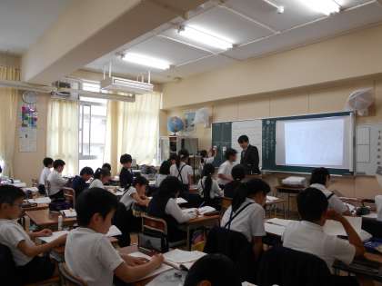 学習参観・・・。高学年の教室では、積極的に手を挙げて発表したり、友達同士で意見交流をしたりと、とても意欲的に学ぶ姿が素晴らしかったです。