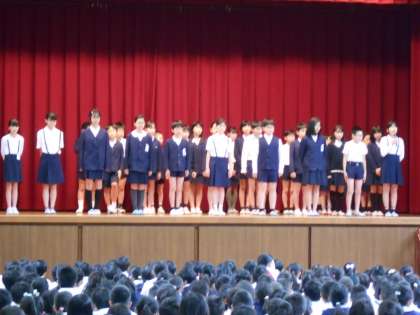 全校児童の前で堂々と立派に発表する姿は、とても頼もしかったです。