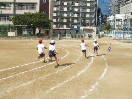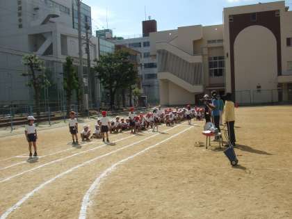 1年生の運動会練習は、「たまいれ」と「かけっこ」をしました。
