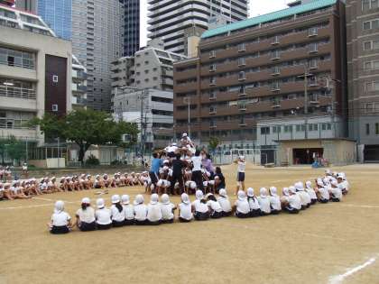 5・6年の運動会練習で、「組立体操」をしました。
