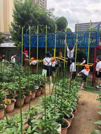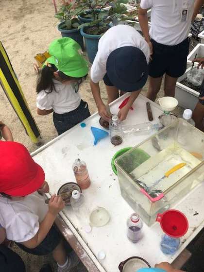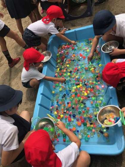ペアで、やりたい遊びコーナーに行って、遊んでいます。幼稚園児の手を引いて、優しく遊ぶ5年生。素敵です!