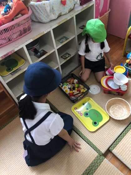 お部屋の中では、粘土遊びや的当てゲーム、おままごとをして楽しんでいます。