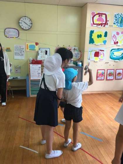 ここでも5年生は、幼稚園児に「なにつくる?」「だいじょうぶ?」と、優しく声をかけています。