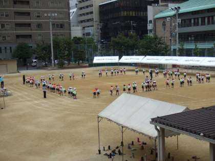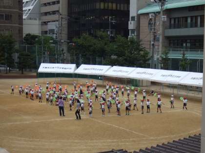 1年生の運動会練習で、学年演技「はっぴぃはっぴぃ!」の練習をしました。