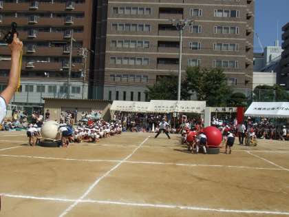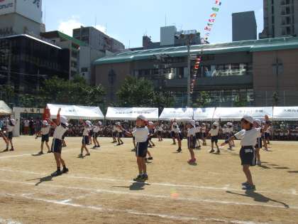 28日(日)運動会・2年生の演技「妖怪ウォッチ」、団体競技「大玉はこび」の様子です。