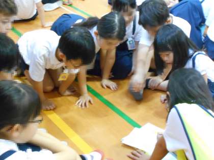 歌謡曲やアニメソング、教科書に出てくる曲などが流れると、児童の皆さんは、よく耳を澄まして聞いていました。「あ!わかった!!」とたてわり班の人に伝え、なかよく活動できました!