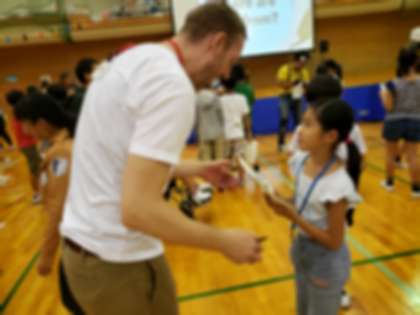 大阪市の外国人英語講師C-Netの先生たちと英語で楽しく会話したり、体を動かしたりしています。