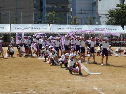 団体演技「アラビアン ワールド」では、ビニールを大きく動かすこと、息をそろえること、楽しむことを意識して、練習を重ね、最高の演技を披露することができました。