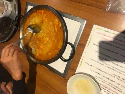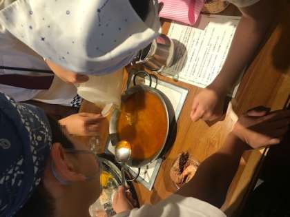 しっかりと説明を聞いて、おいしいパエリアを作っています。