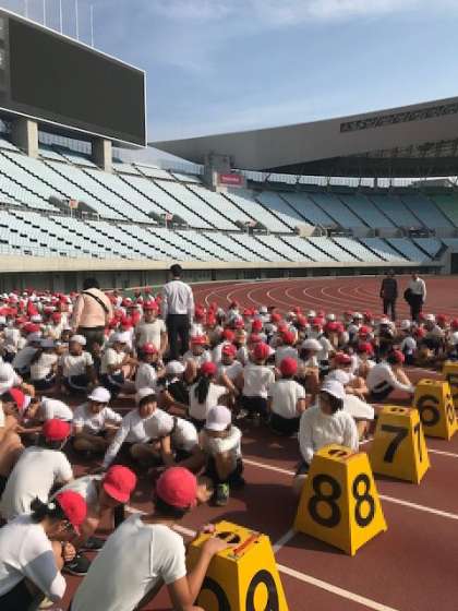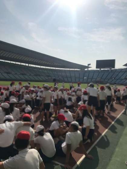 中央区の7つの小学校の6年生がヤンマースタジアム長居に集まりました。
