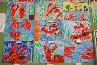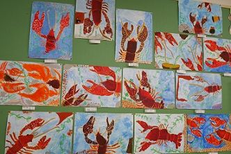 どの作品も、力強い、元気なザリガニの絵に仕上がりました。