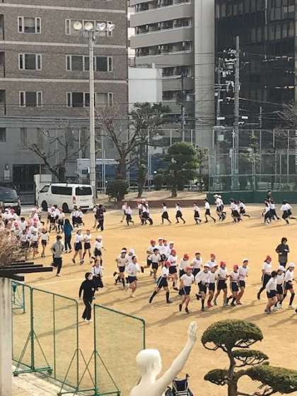 今日は冬らしい寒い日になりました。5年生、6年生が耐寒かけ足を行っています。体育の時間も走って、心と体を鍛えています。自分のペースでがんばりましょう。