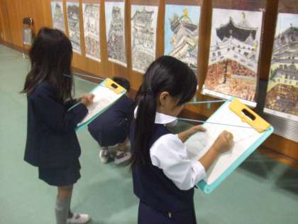 同じ学年や他の学年の作品をじっくり鑑賞し、個々の作品のもつ良さを味わっていました。(写真は2年生の様子です)