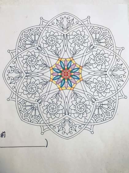 のせている画像は図工の色ぬりの課題の完成見本です。