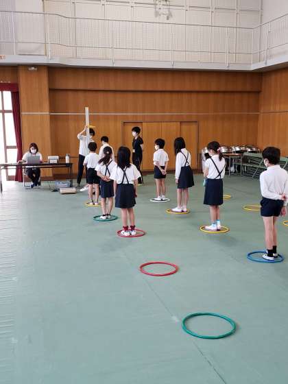 まだ、体操服が準備できていないので、みんな標準服での測定です。