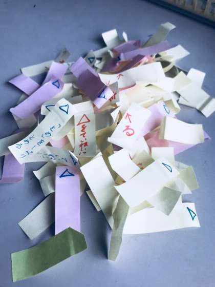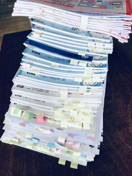 直し終わって役目を終えたふせんの山です。