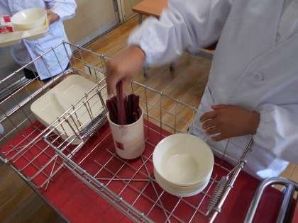 給食にも慣れ、「早く給食が食べたいな。今日は何だろう。」と毎日楽しみにしているようです。パンの袋も上手に開けられるようになり、食器の片付けもしっかりできるようになりました。「来週から、みんなで給食を一緒に食べるのが楽しみだね。」と話していました。