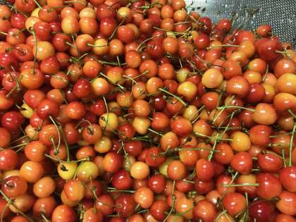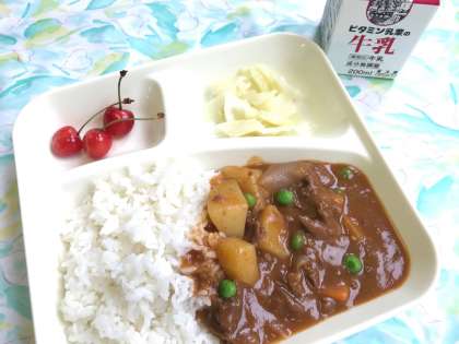 今日の給食には「さくらんぼ」が登場します。旬の食材で、とても甘くておいしいです。