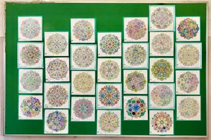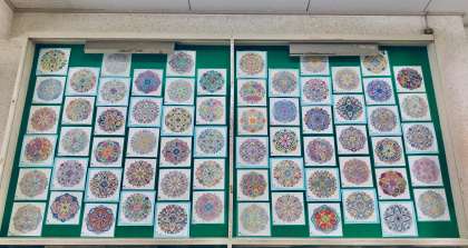 6月の玄関掲示は5年生のぬり絵を飾っていました。