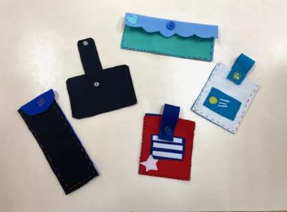 はじめての裁縫から約1ヶ月で、こんなに上手に作れるようになりました。みんな、試行錯誤しながらとても楽しそうに作っています。どんな作品に仕上がっていくか楽しみです。