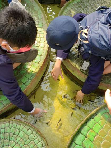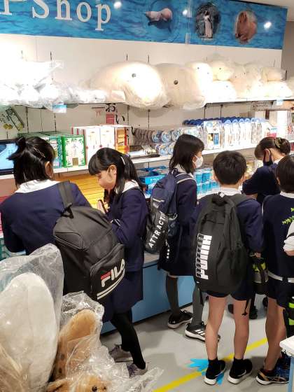 お昼ごはんを済ませました。お土産を選んだり、鳥羽水族館の生き物を触ったりと時間が全然足りない様子です。