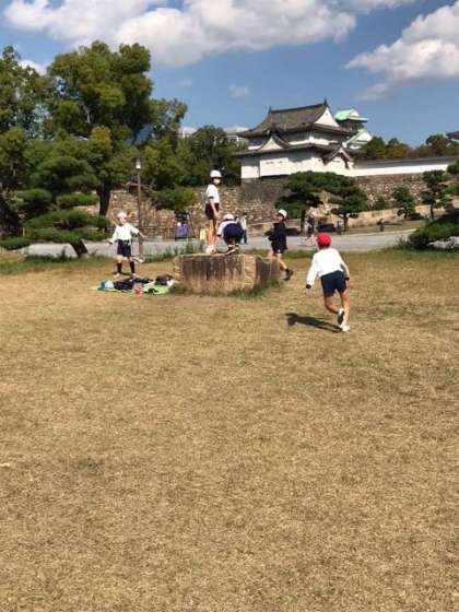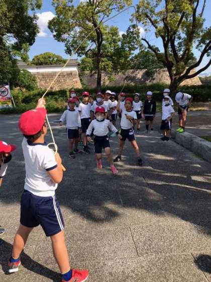 みんな遊びです。鬼ごっこや長縄で遊んでいます。