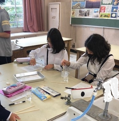 PVA洗濯のり・水・ホウ砂・絵の具・ぬるま湯を使って、慎重にかき混ぜて作っていました。