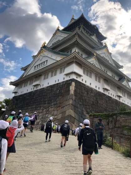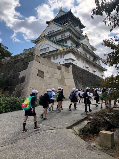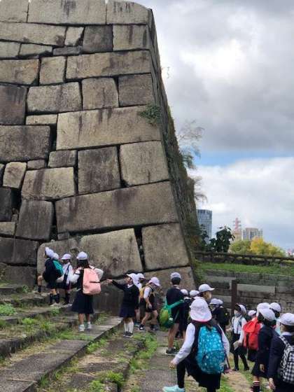 大阪城を見慣れている南大江の子ども達ですが、この場所では思わず歓声があがります!「わー。大きいなぁー!迫力あるー!」