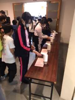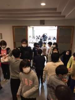 お腹がすきました。夕食です。手を消毒ひて、検温をして食堂に入ります。